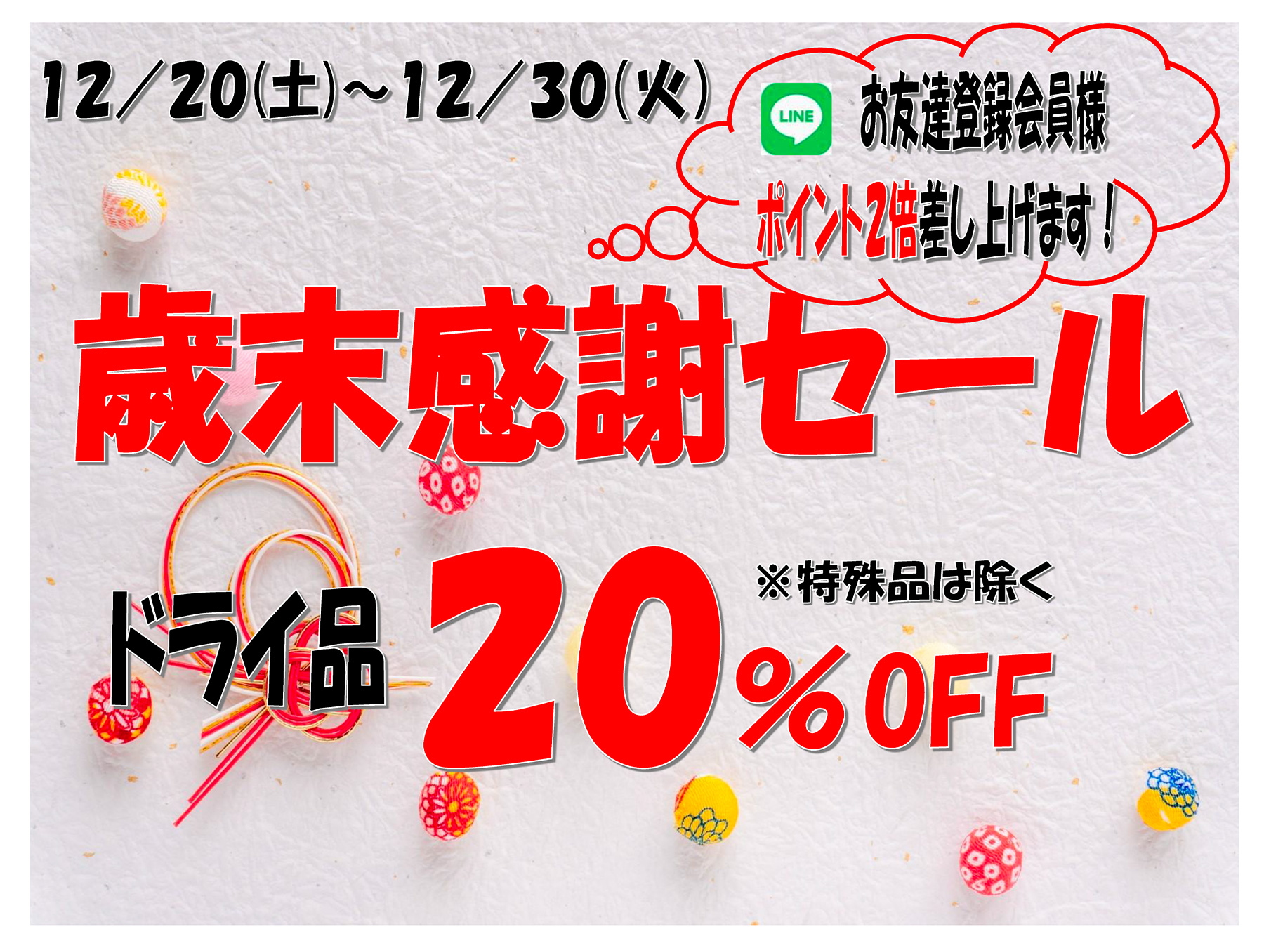 歳末感謝セール ドライ品20%off 2025年12月20日(土)〜12月30日(火)まで